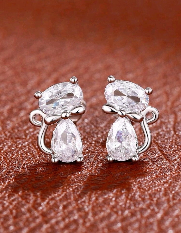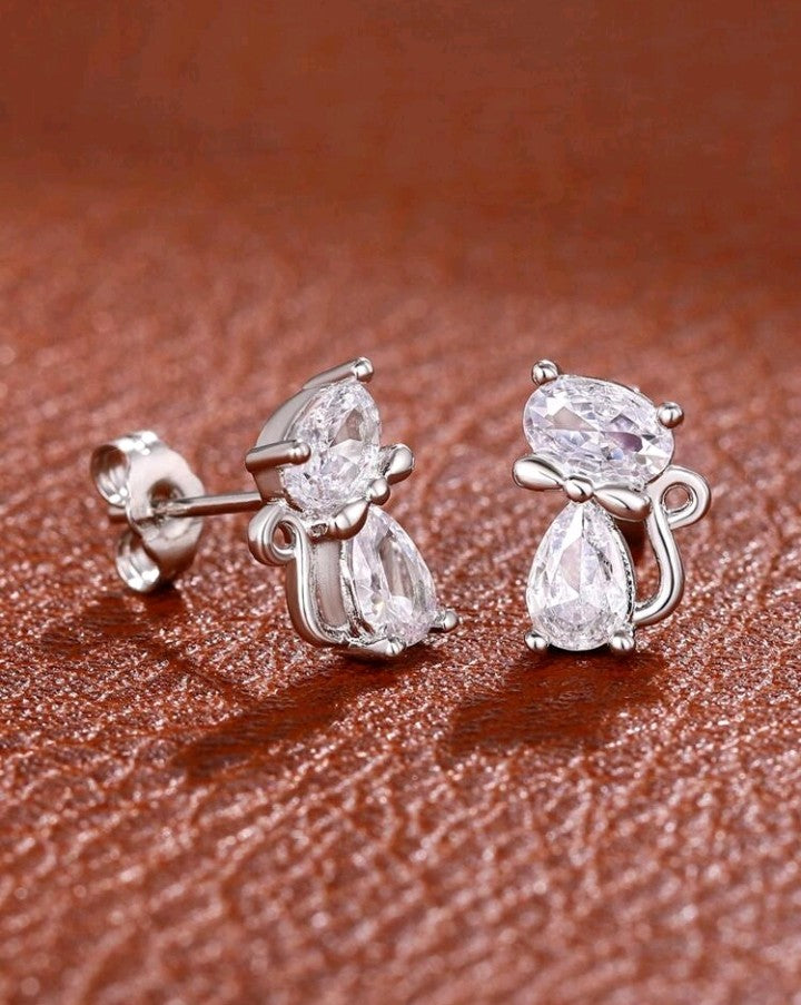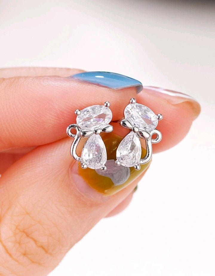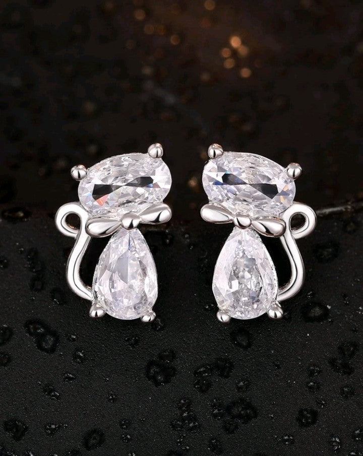 Aritos tipo botón de gato con circonita