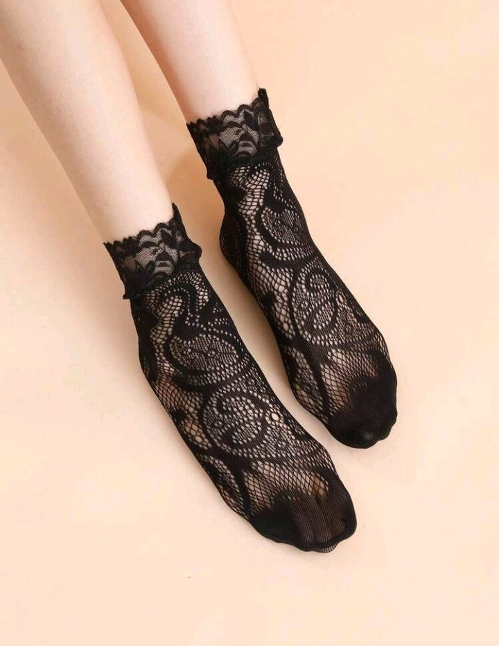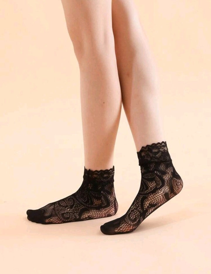 Par de medias de red cortas con encaje para mujer,de moda y adecuadas para uso diario