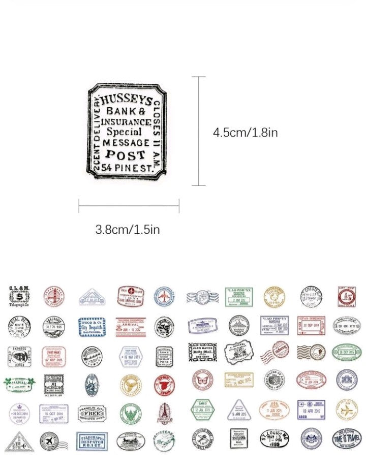 2 pegatinas aleatorias, vintage con sello postal, material PET para portátiles, cuadernos, fundas de teléfonos móviles, útiles escolares